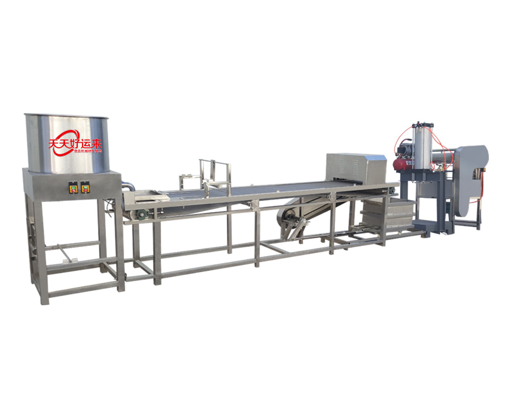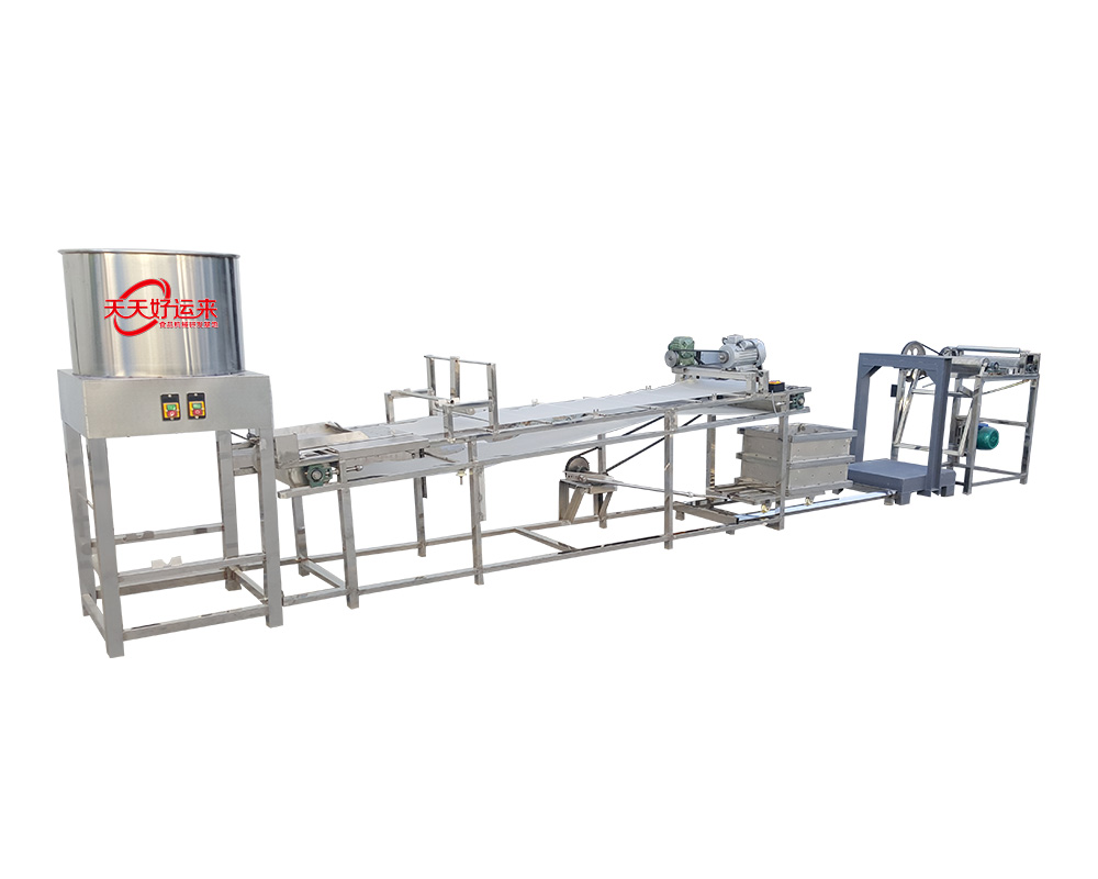 自動豆皮機(豆皮機、干豆腐、百頁、千張)生產(chǎn)線,是完成攪腦、潑腦、送料、折疊包布、以及壓皮、扒皮、卷包布等工序1-2人就可生產(chǎn)。大大的降低了勞動強度和提高了勞動功效。同時降低了成品生產(chǎn)成本。厚薄寬窄可調(diào)、口感勁道滑爽,完全和傳統(tǒng)生產(chǎn)的產(chǎn)品相媲美。本機特點:1、仿手工不改變手工的原色原味。2、占地面積小、操作簡單。3、用電量小,有220V和380V電源供選擇。4、分為90、100普通型和200、300標準型、400、600型工廠型、500仿手工適合做厚皮型。5, 便于清洗,使用壽命可到十年以上。