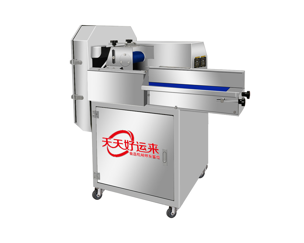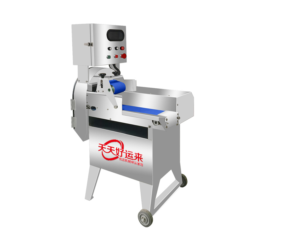 食品加工業者配合自動化生產線。特點:1、數控變頻設計,能隨時調節皮帶和刀片的運轉速度。2、通過調節輸送帶和刀具速度調整