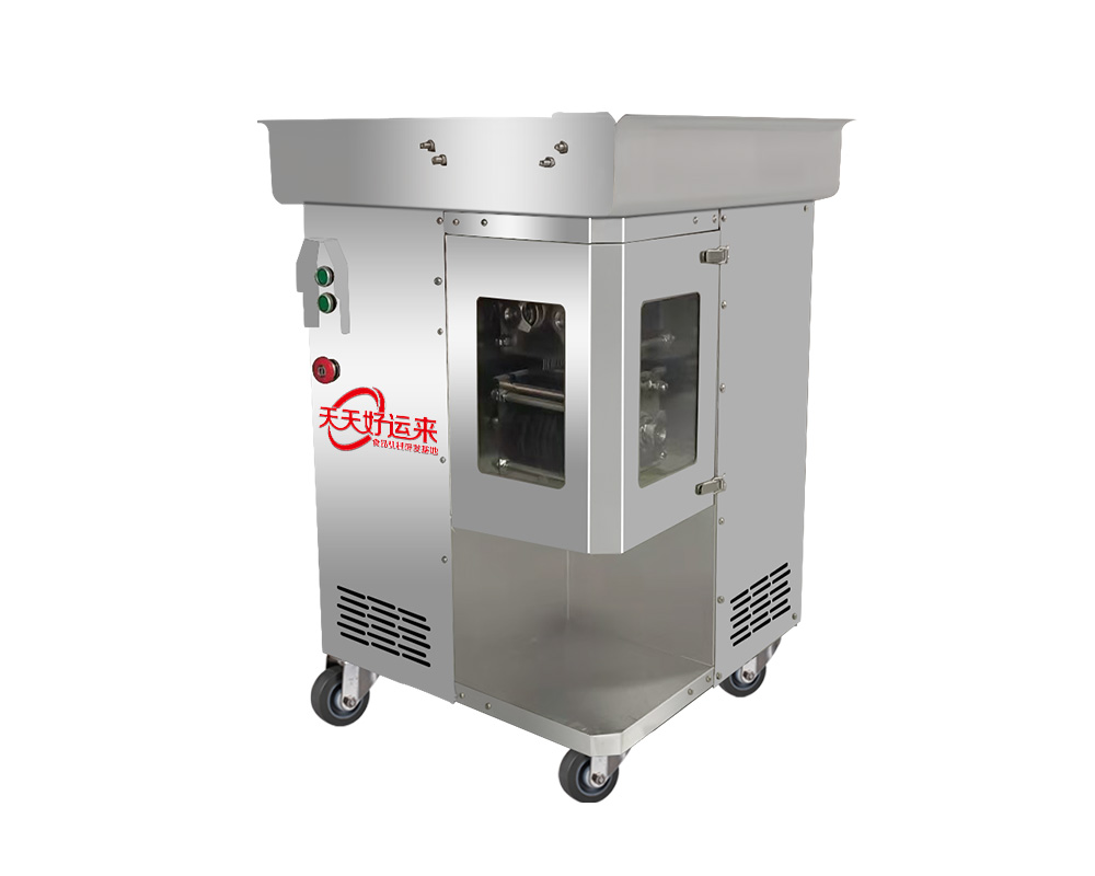 整部機體采用優質不銹鋼制作,高強度籠式機身緊湊結構,表面拋光拉絲處理采用優化衛生設計,方便清洗,可水槍沖洗,機器刀片為不銹鋼材料,特殊淬火工藝鋒利耐用,兩個獨立刀組,可自由拆卸,切面光滑新鮮使其肉制品薄厚均,高品質始終如一,設備帶有萬向剎車腳輪方便移動,實現對無骨肉類及類似榨菜富有彈性的食物切成絲. 切片 切丁,適用于大中小規模的餐飲或肉類加工企業;