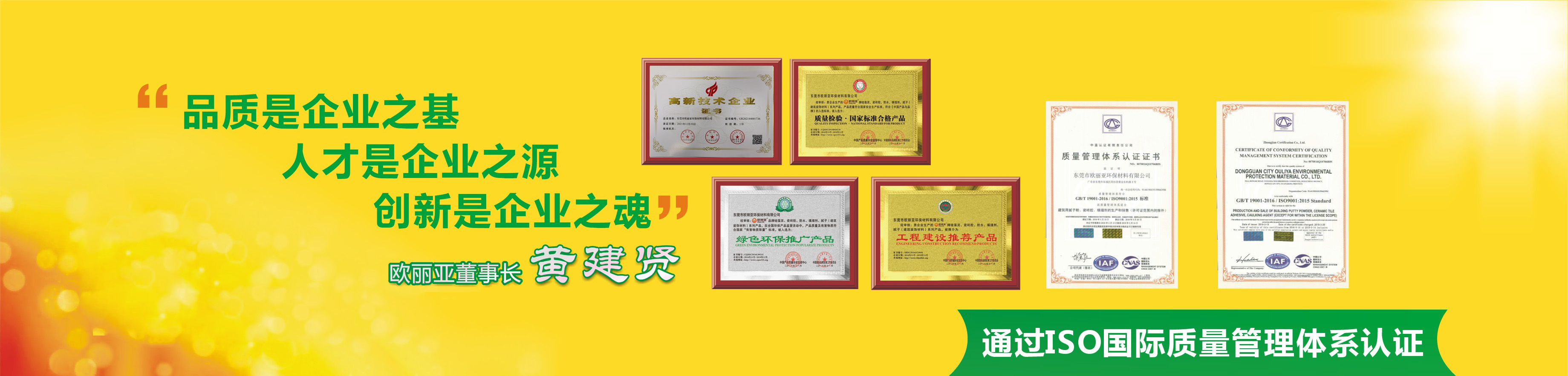 東莞市歐麗亞環保材料有限公司專注于“環保,創新”型建筑裝飾材料,瓷磚膠,硅藻泥,石材防水背膠,抗裂砂漿,裝飾砂漿,防水系列,自流平水泥,防霉膩子,二合一填縫劑的研發、生產、營銷、技術咨詢于一體的墻飾高新技術企業。